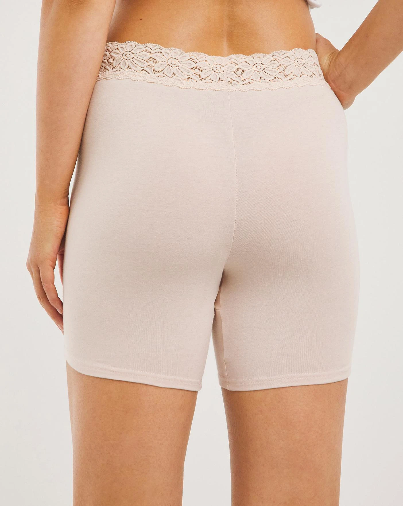 The Lace Cotton Comfort Range is perfect for everyday comfort. This 2 pack soft cotton long line shorts feels lovely against the skin, which allows for a relaxed feel that lasts throughout the day. With the lace trim detail adds a touch of style. Why not pair with our matching crop top or vest. By choosing our cotton products, you are supporting Pretty Secrets investment in Better Cottons mission. This product is sourced via a system of mass balance and therefore may not contain Better Cotton. bettercotton.org/learnmore