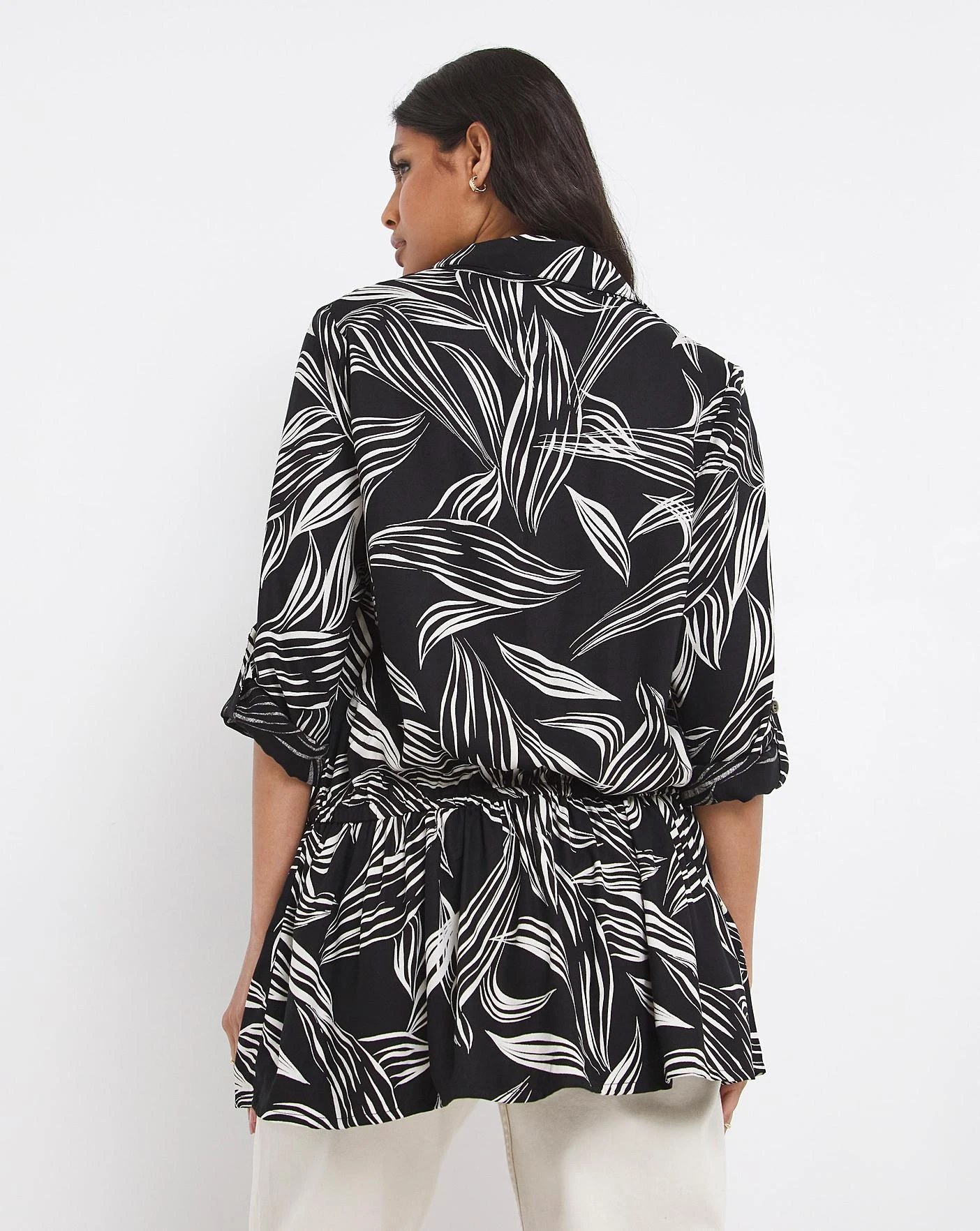 Our viscose twill drawstring shirt has arrived in a gorgeous print. Featuring a drawstring at the waist and three quarter length sleeves, this shirt can be paired easily with jeans and a pair of sandals. In a non-stretch viscose material, this shirt offers a relaxed fit.