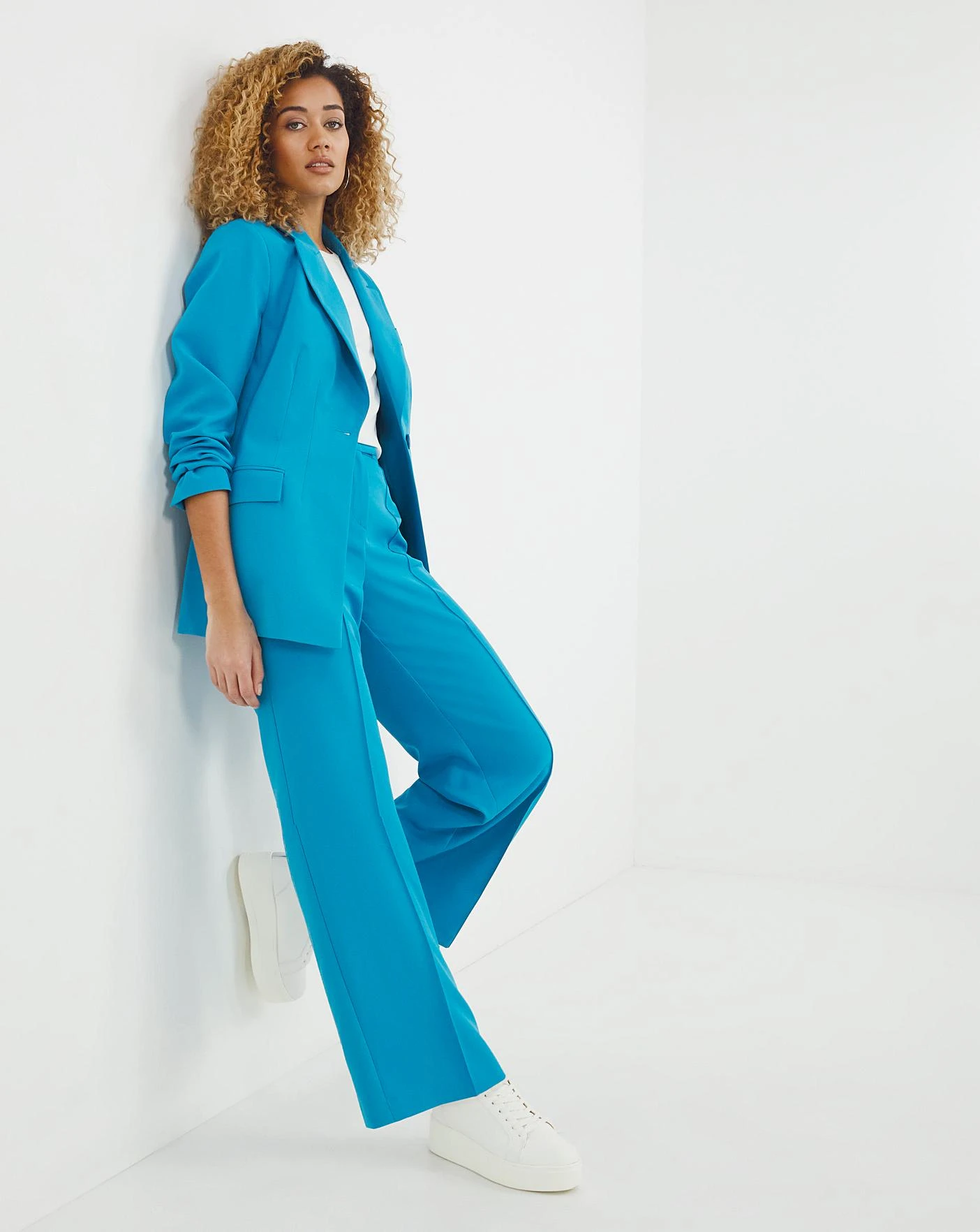 Make a statement this season with our Blue Tailored Trousers. In a flattering wide leg shape, these trousers feature a hook and eye fastening, a smart press fold at the front, two side pockets and a mock jett pocket on the reverse. Pair with our matching Cinched in Waist blazer for a stand out look to take you from day-to-night.