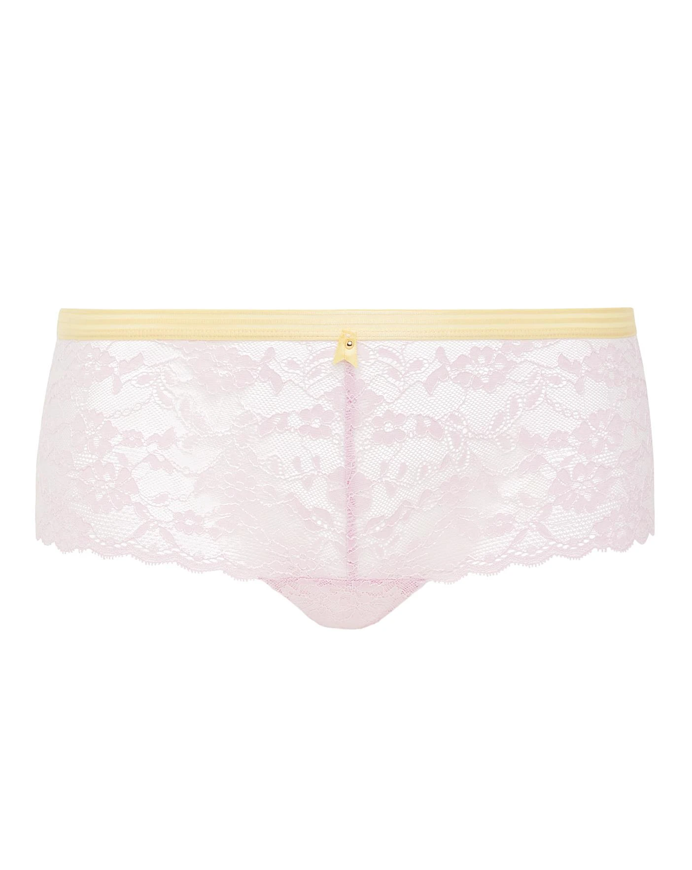 Offbeat is crafted from a soft stretch floral lace. Sexy shortie styling featuring all-over stretch lace detailing and contrast semi-sheer striped elastic waistband. Bow at the centre front with silver press stud detailing.
