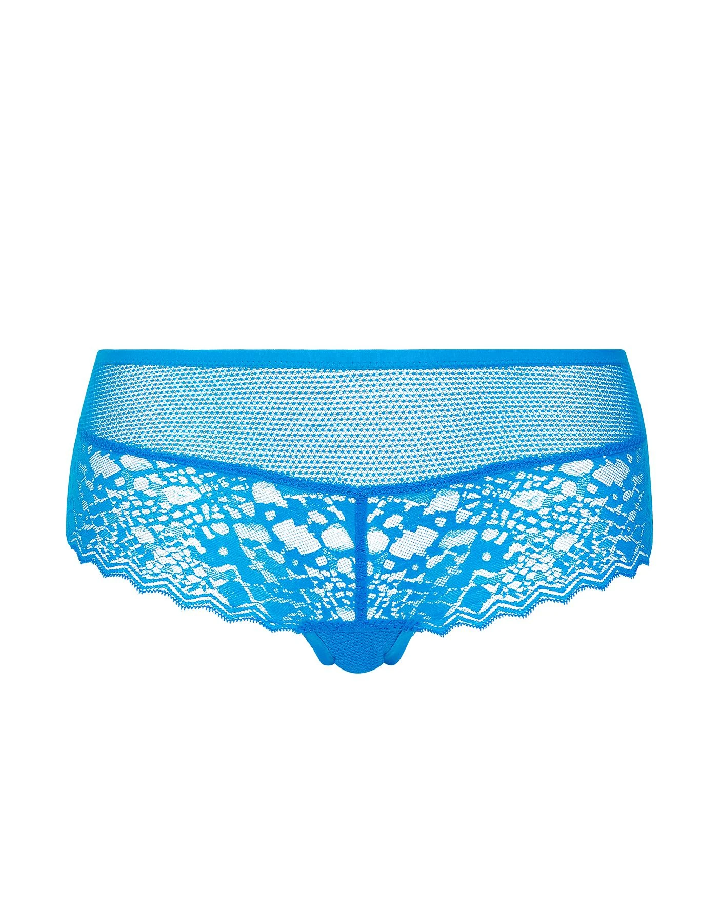 Temptress is a collection that is worn to be seen. A contemporary geometric lace accents all pieces for a flirty, feminine look. The short has an on-trend low rise styling and decorative mesh lace. Scallop lace back for a no visible panty line for minimal show through under clothing. Strappy keyhole detail at centre back with gold slider. Keyhole centre back detail with strapping through a gold slider.