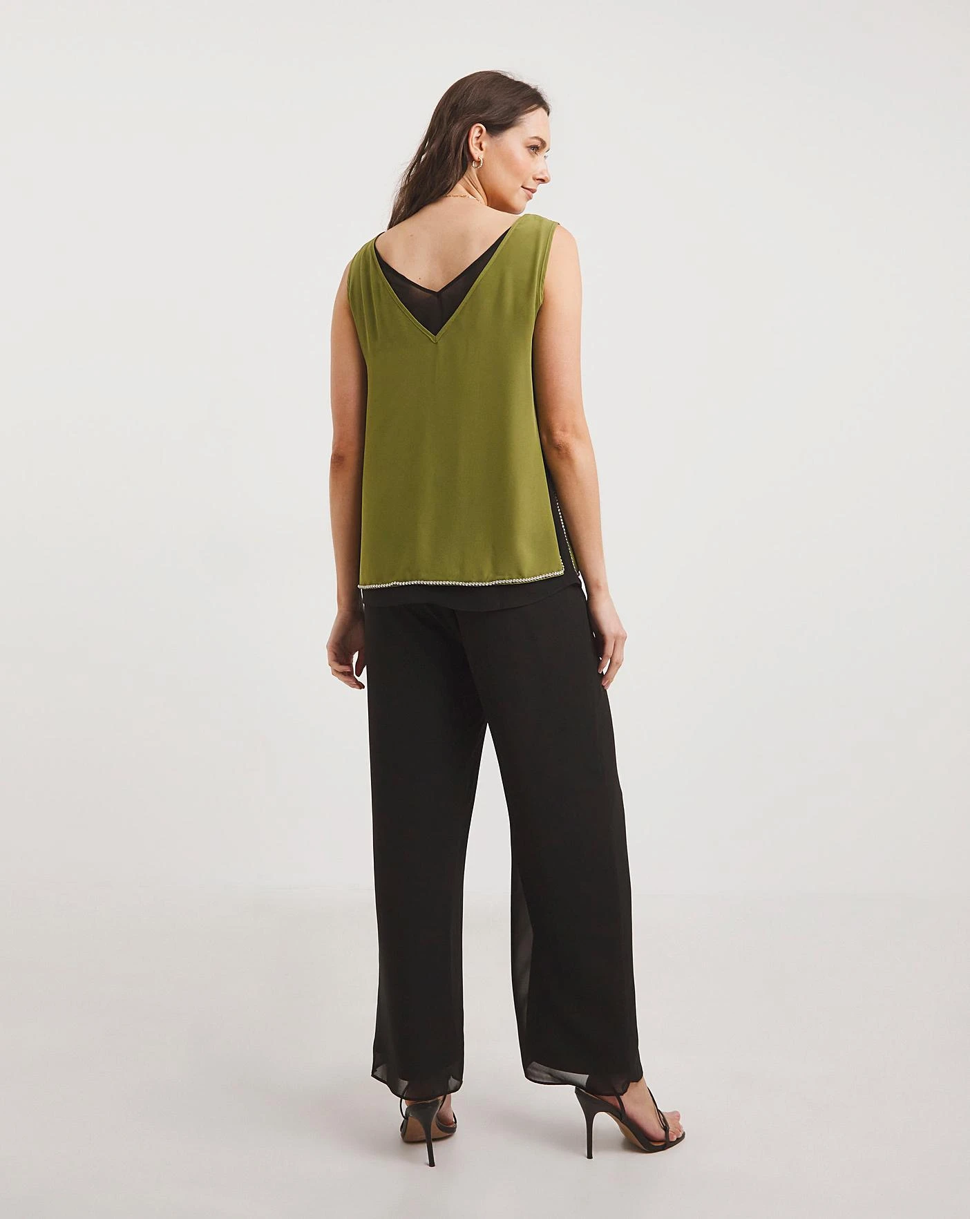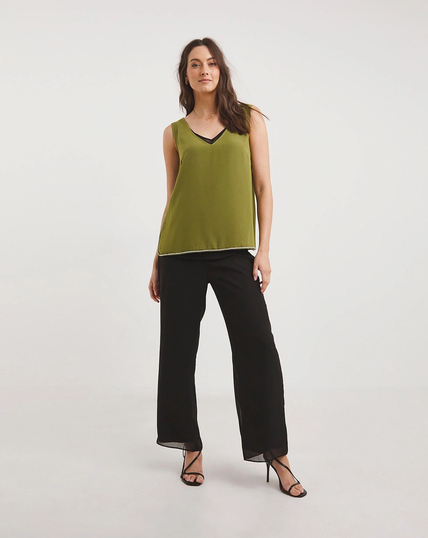 This lovely Joanna Hope trouser set is a truly versatile piece. Created from chiffon, the vest is finished with a diamante trim and side splits. Trousers come in a pull on style, featuring two side pockets and an elasticated waist.