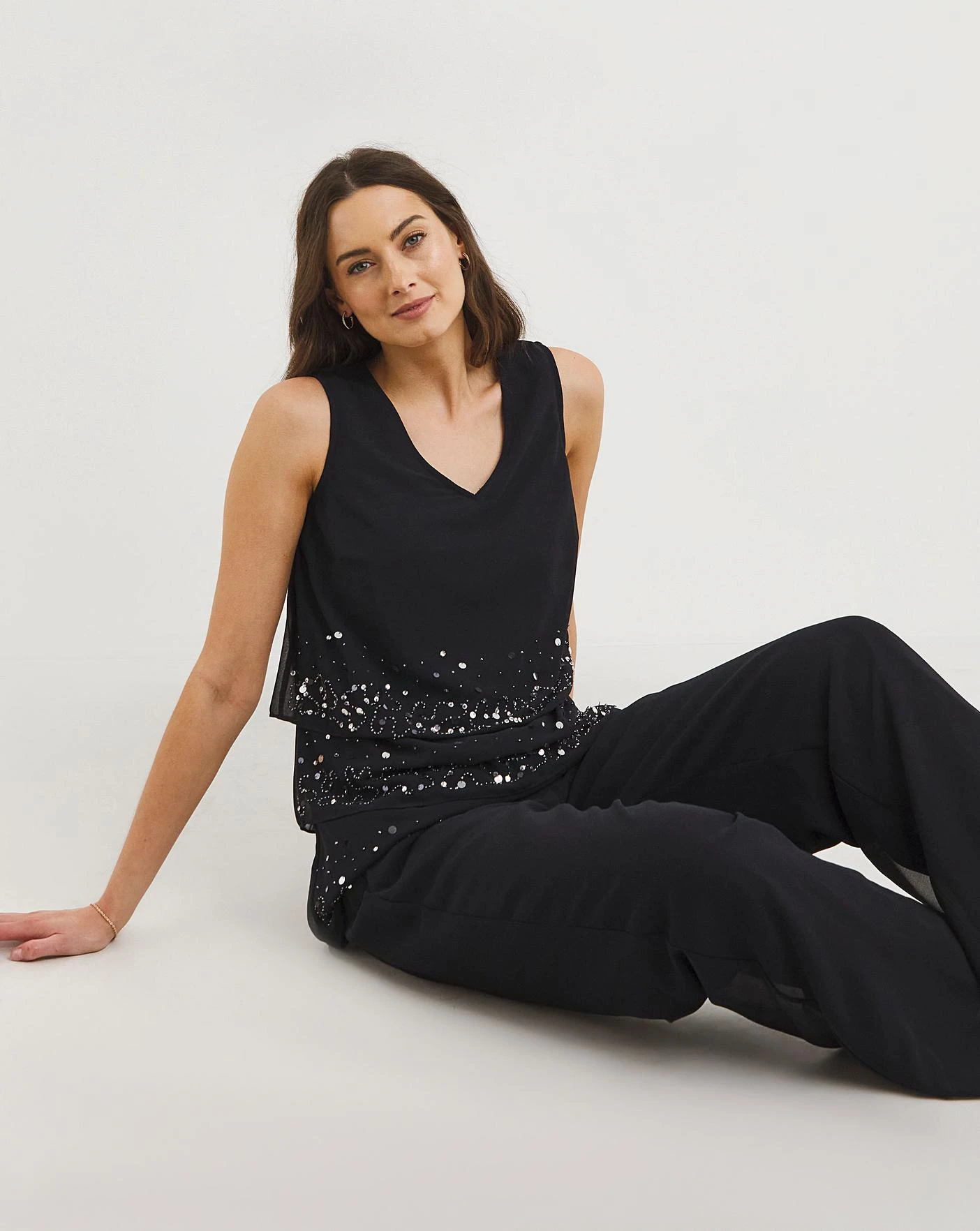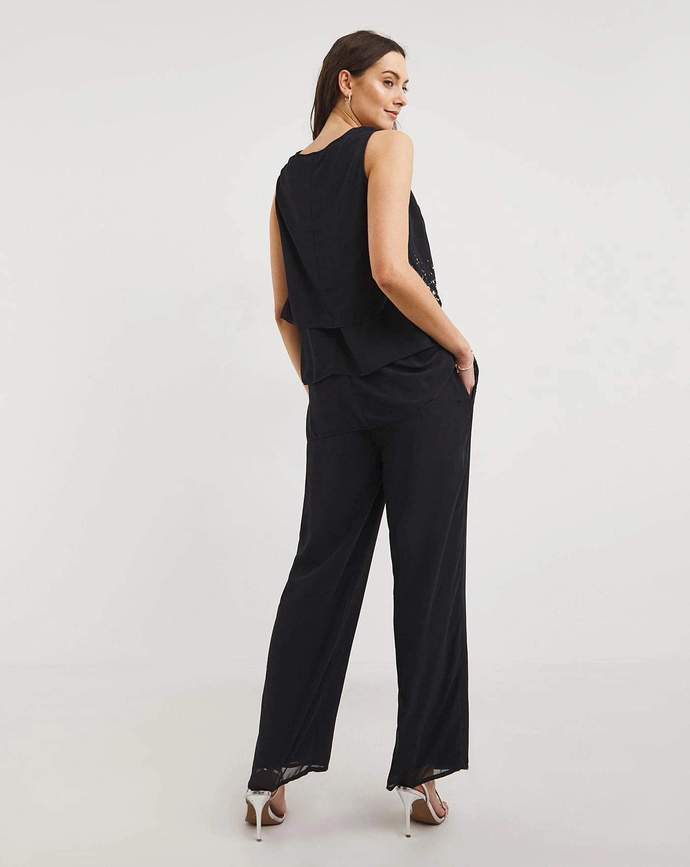 This stunning Joanna Hope 2-piece embellished trouser set is perfect for your approaching occasions. Crafted from chiffon, the vest is finished with stunning tiered statement embellishment. The trousers feature a pull-on style, in a wide-leg modern shape.
