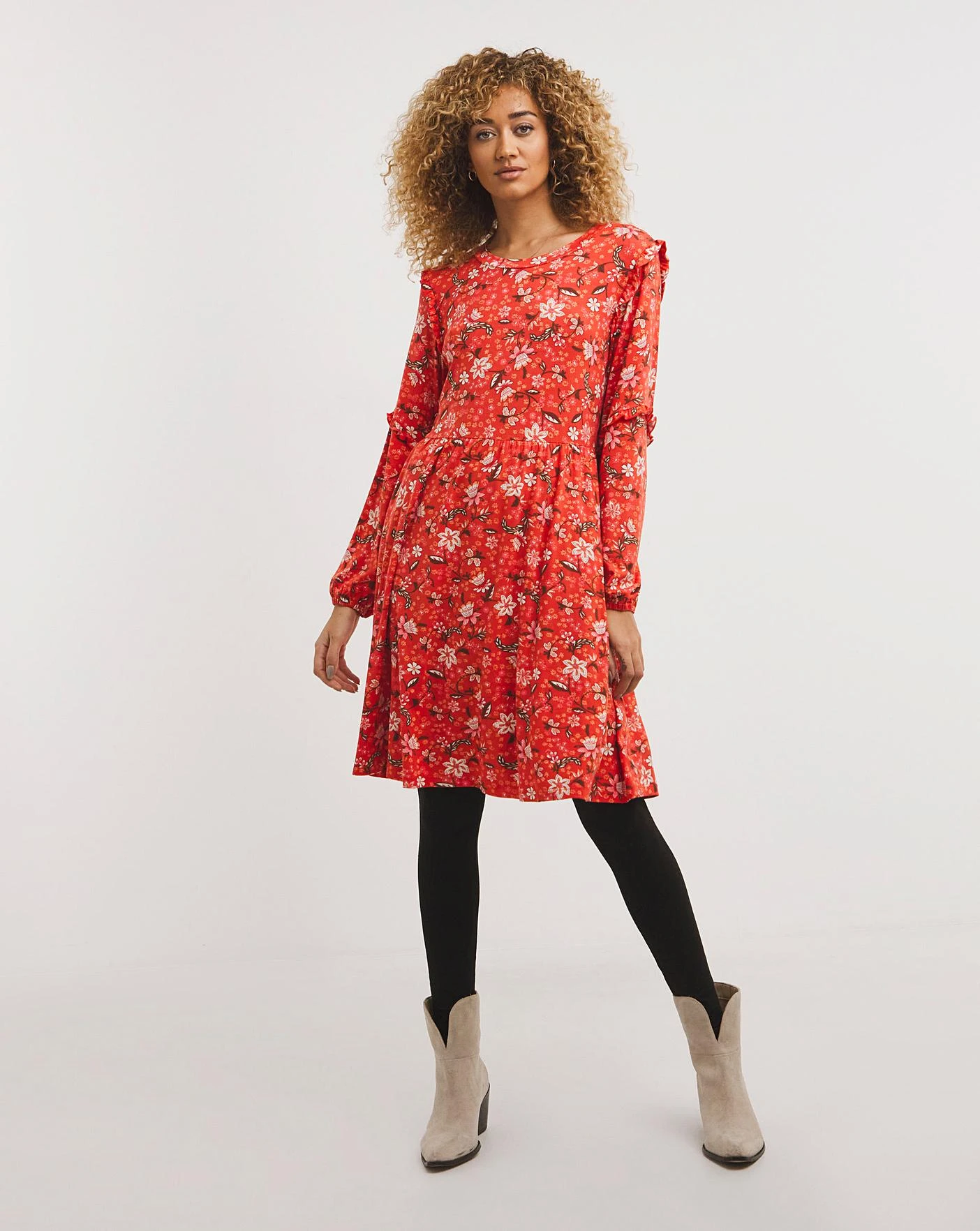 Feel fabulous in this Joe Browns dress! This dress is comfy but does not compromise on design, with a gorgeous frill on the shoulder and a key hole back. Pair this soft stretchy dress with leggings or jeans and top the outfit off with boots for the ultimate look.