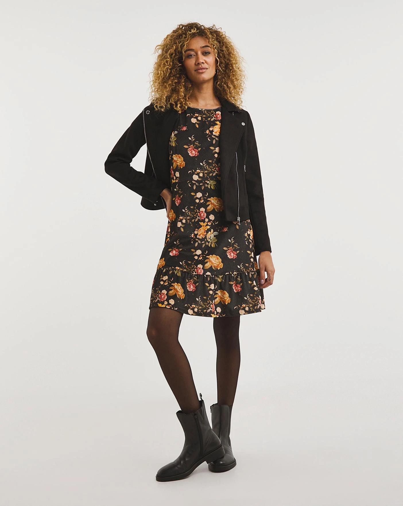 This head-turning floral print dress evokes effortless, everyday elegance. You’ll feel so free-spirited in its flattering swing style. This dress has a stunning silhouette that’s set off perfectly by the stunning and very stylish print colours. Paired with tights or leggings, it’s so easy to wear.