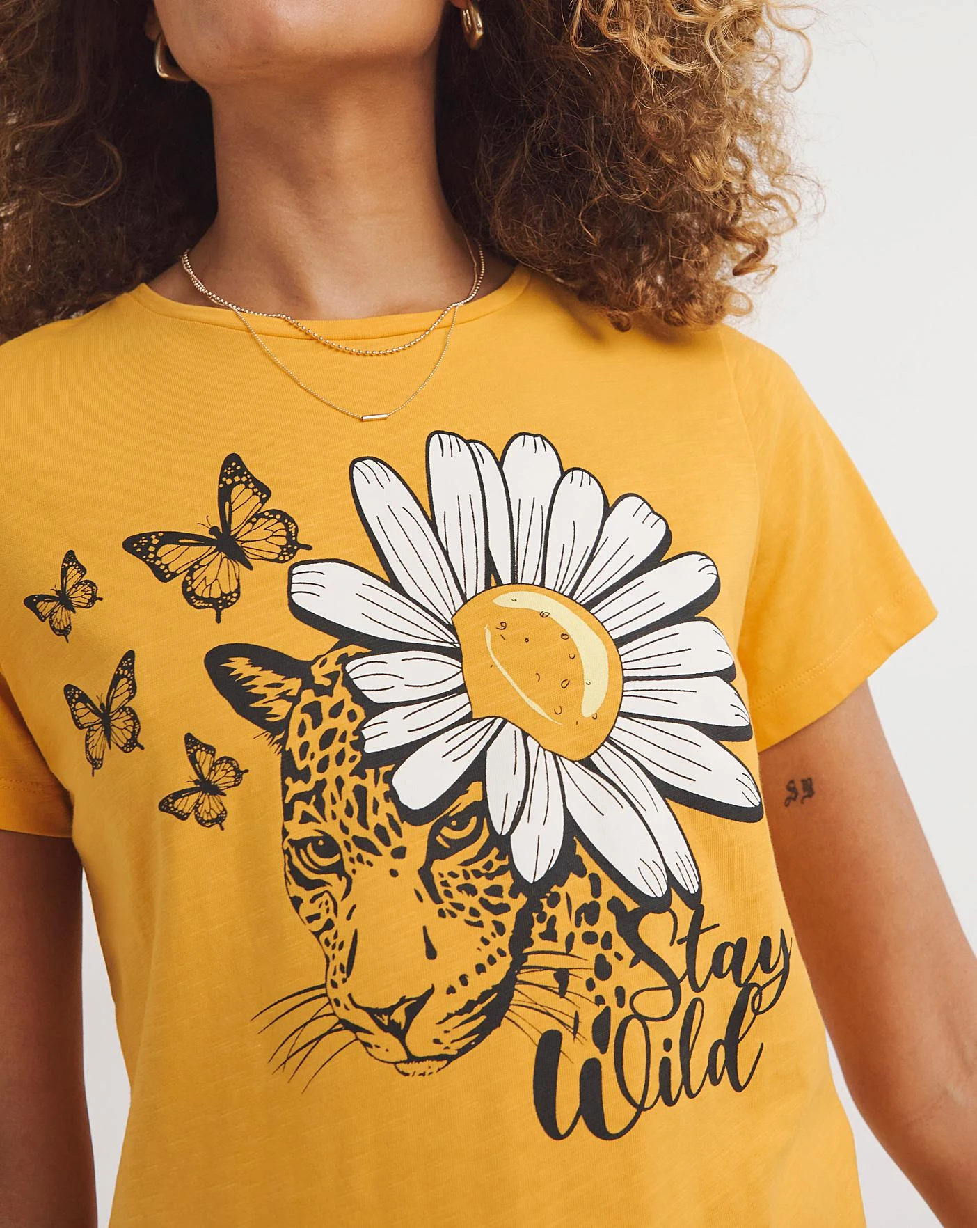 Style our Joe Browns eye-catching graphic top for a fabulous wild touch. In a bright bold colour with a fun daisy and leopard graphic on the front, this women’s t-shirt is perfect for summer. Our jersey top will leave you so full of life, you’re sure to wear it over and over again this season.