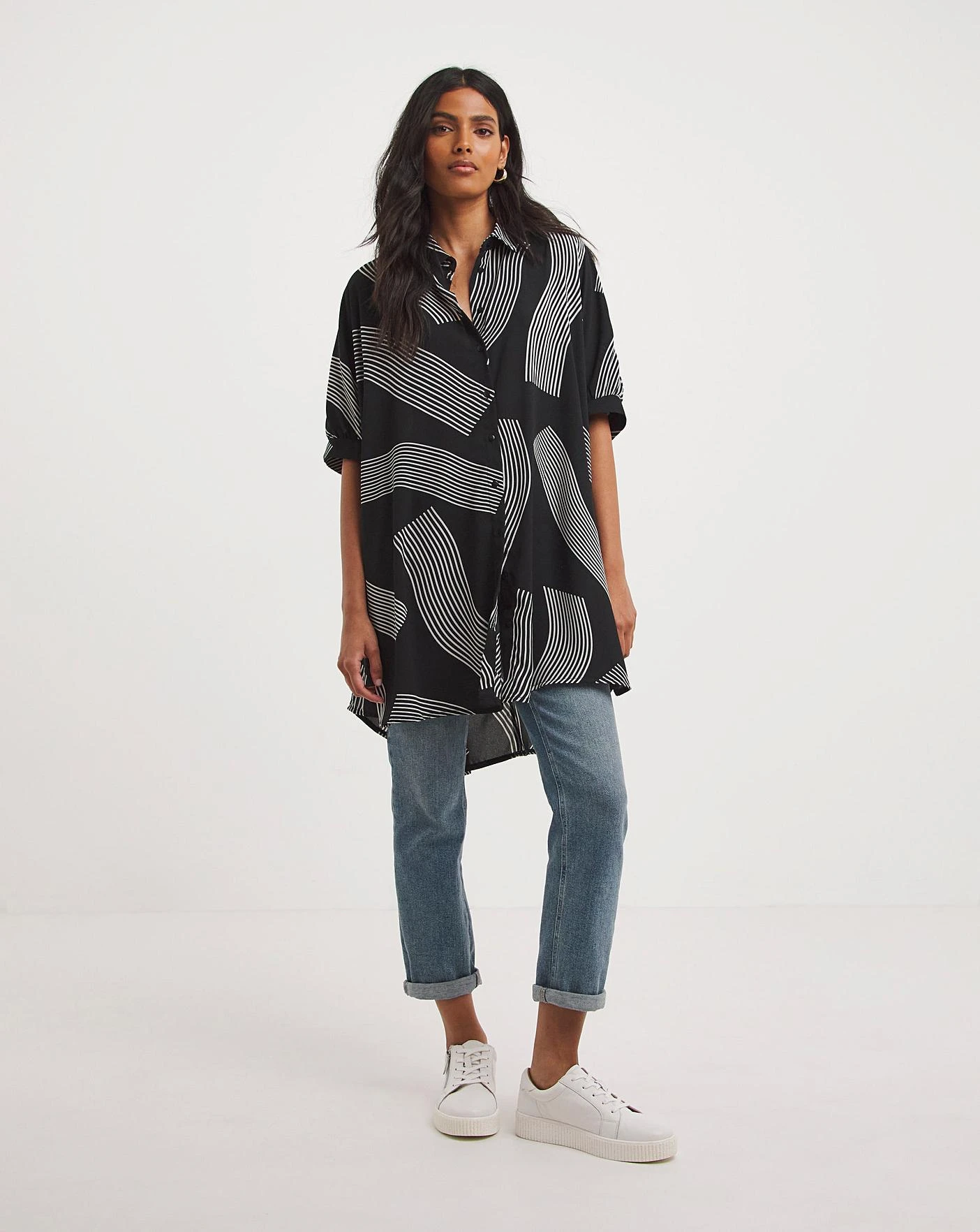 Our Oversized Blouses are a wardrobe staple and so easy to style. Perfect for any occasion, the oversized fit and gorgeous mono print will make you look and feel fabulous. Pair with jeans and boots in the day or dress up with heels for a glam evening look!