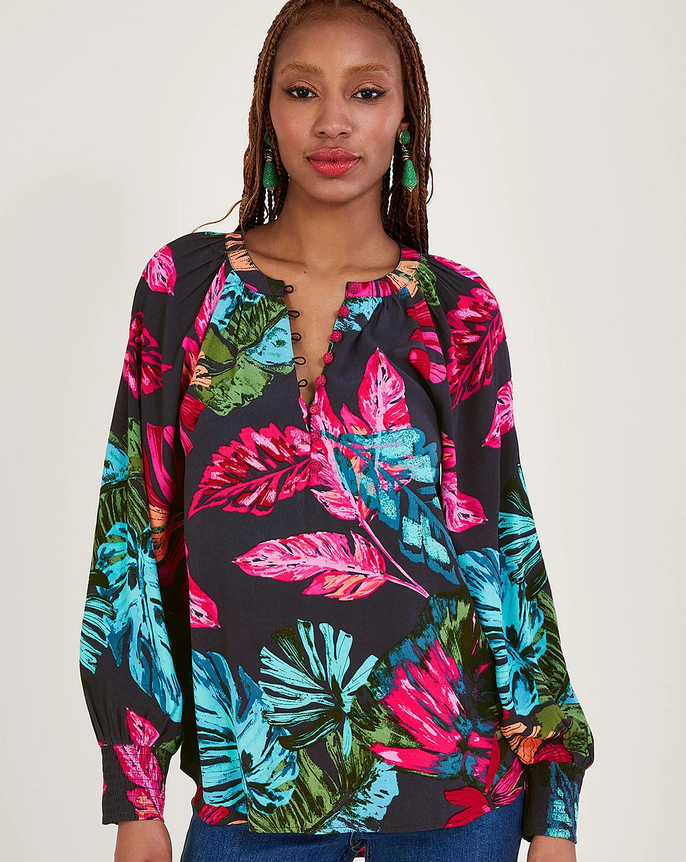 - Monsoon Bria Palm Print Blouse
