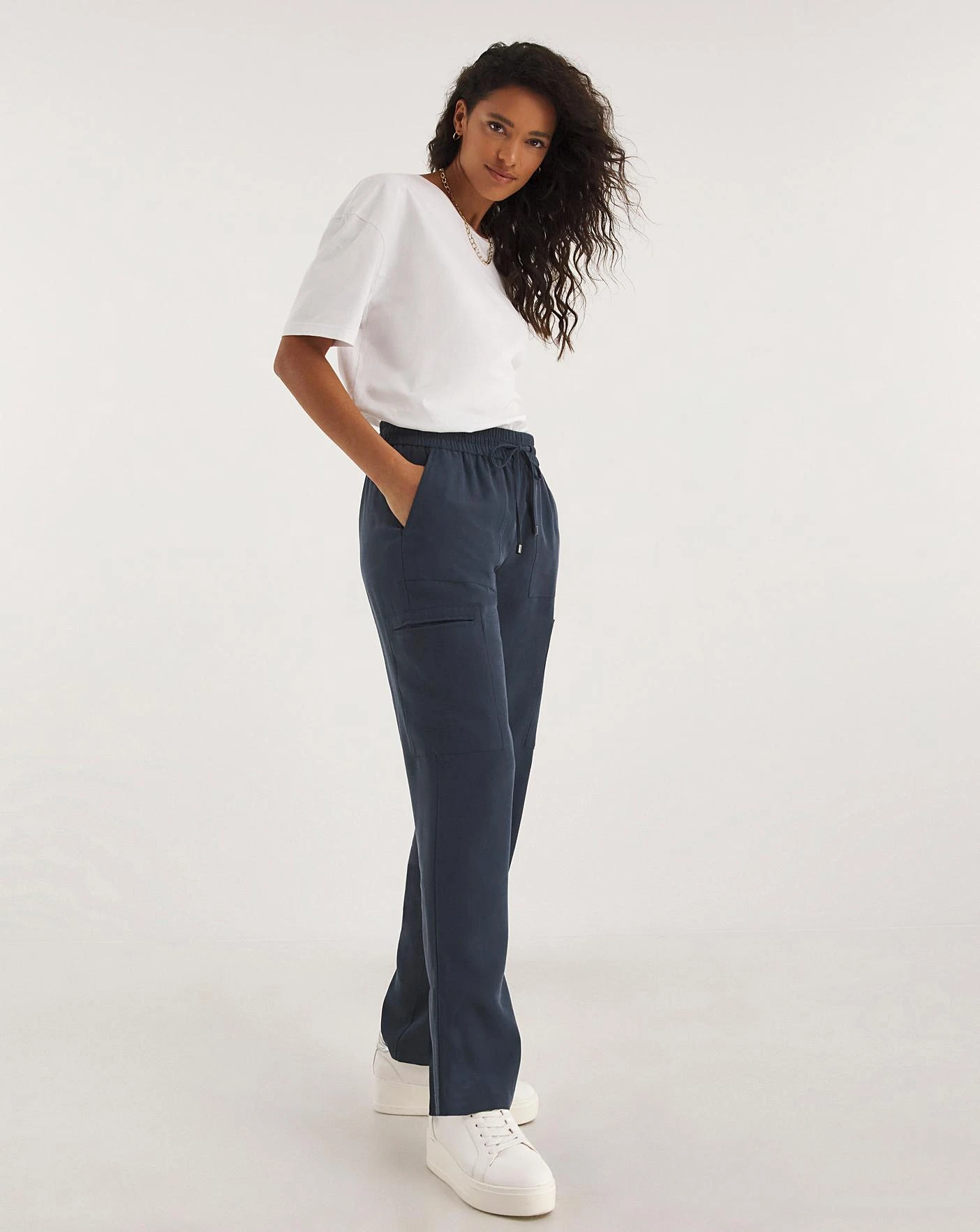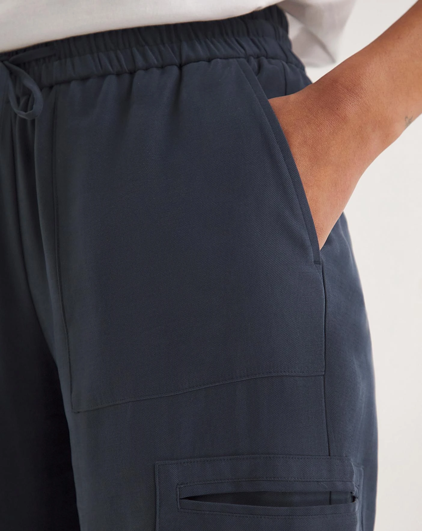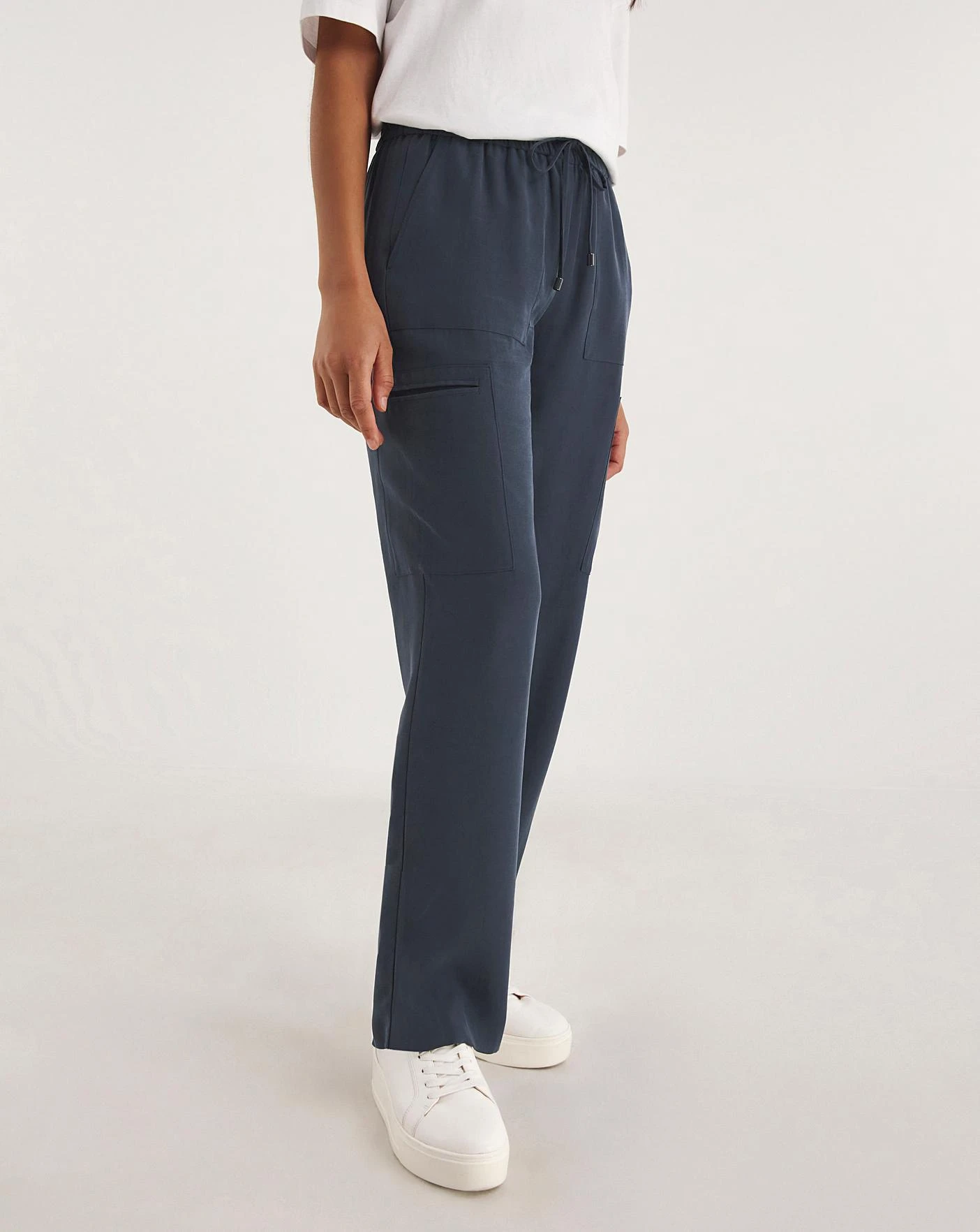 A smarter alternative to the trend we can’t get enough of this season – the cargo! These trousers are in our super drapey fabric which creates a more formal look. Featuring an elasticated pull on waistband for added comfort and stylish yet subtle pocket detailing, these trousers look perfect with a shirt or blouse for that elevated look.