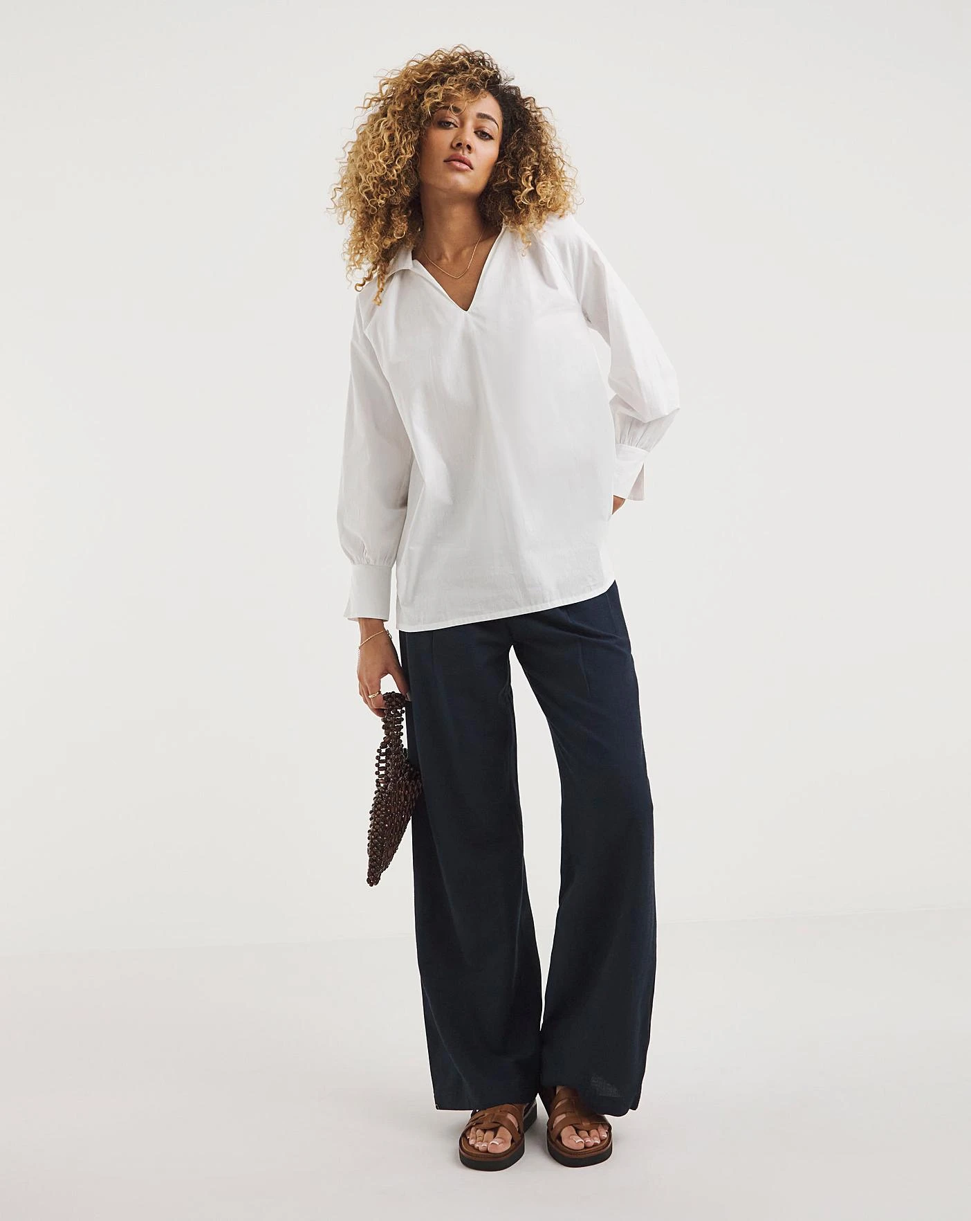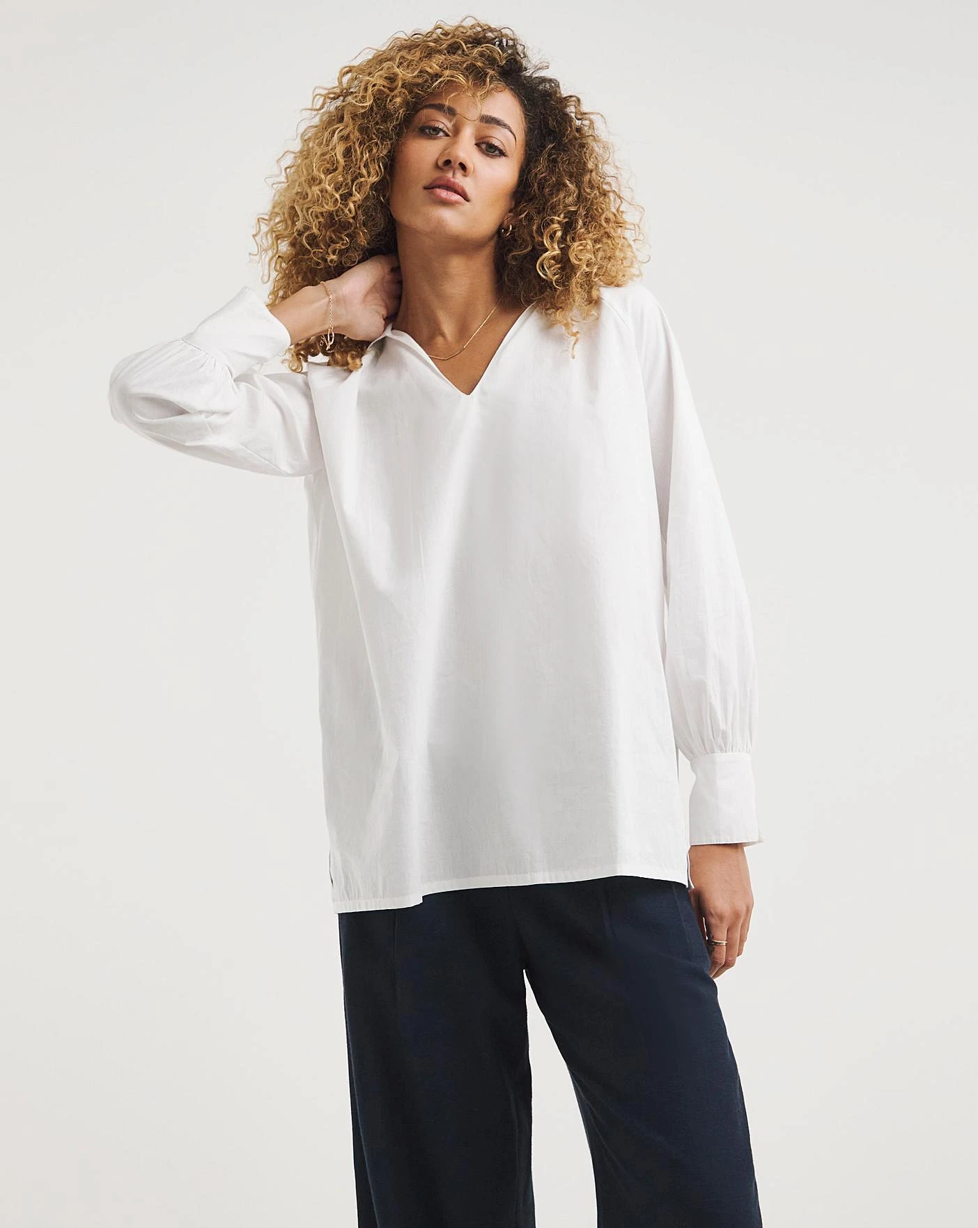 The perfect shirt to complete a jeans and a nice top look. Our pull over cotton shirt is an easy-going piece that can be paired with jeans and dressed up or down with accessories. Opt for a pair of heeled boots, or dress down with casual trainers for comfort. Please note that this shirt comes in a relaxed fit so that you can stick to your usual size.