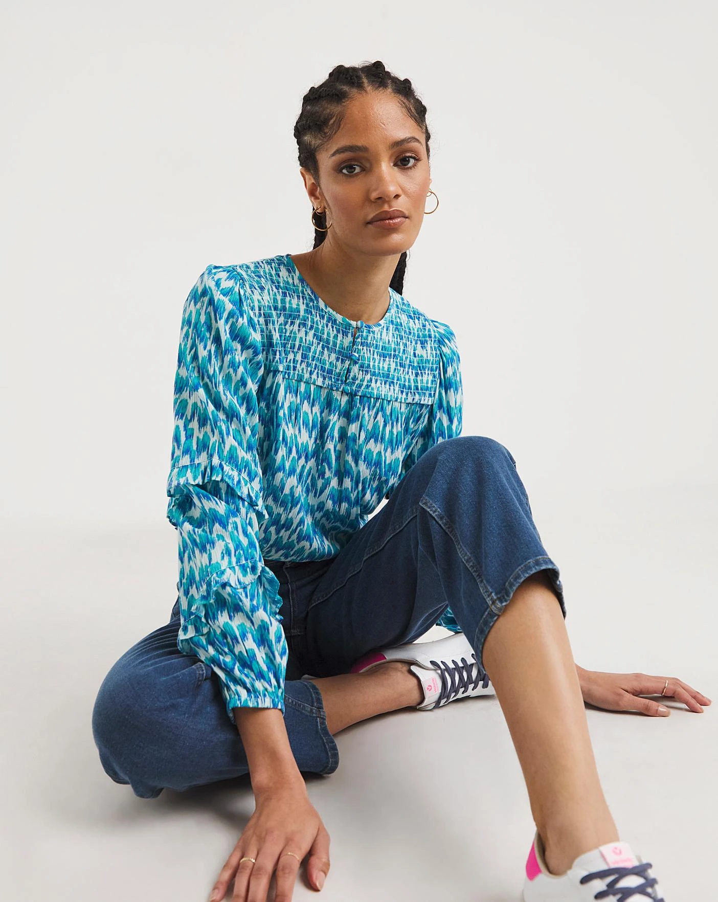 The shirred yoke top is great for a day time look, featuring a flattering frill sleeve detail. Pair this top with jeans and opt for a pair of boots or trainers. Please note that this top comes in a relaxed fit and is made of a non-stretch fabric.