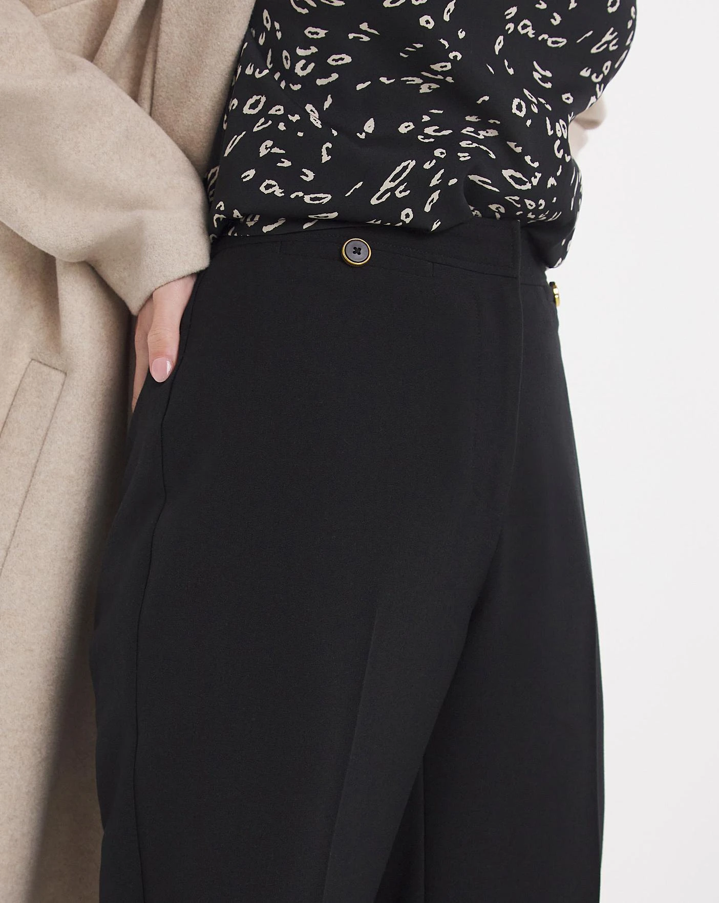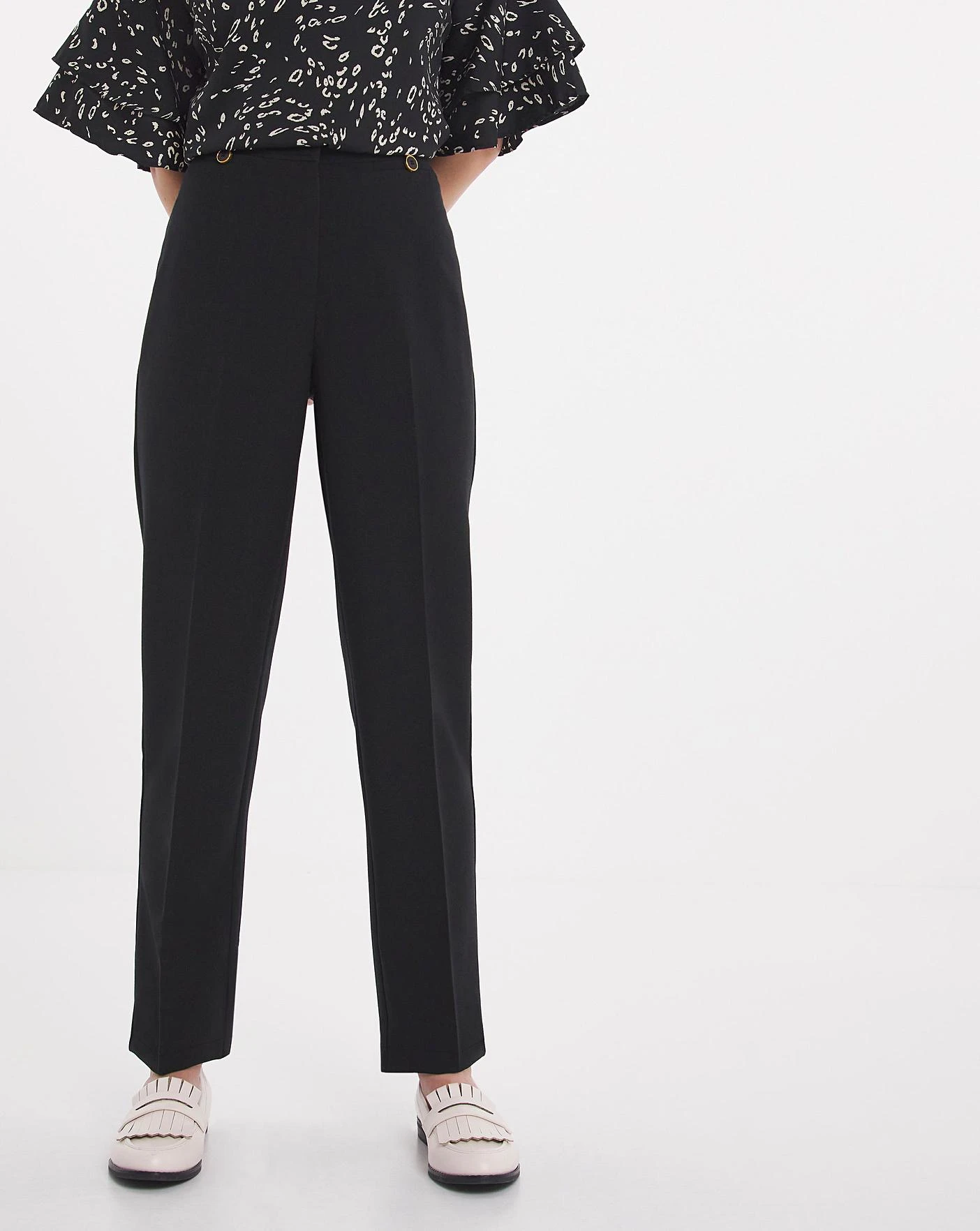 Flattering fly front trousers from Slimma, with zip-and-hook fastening, pockets to front, and back waist elastic.