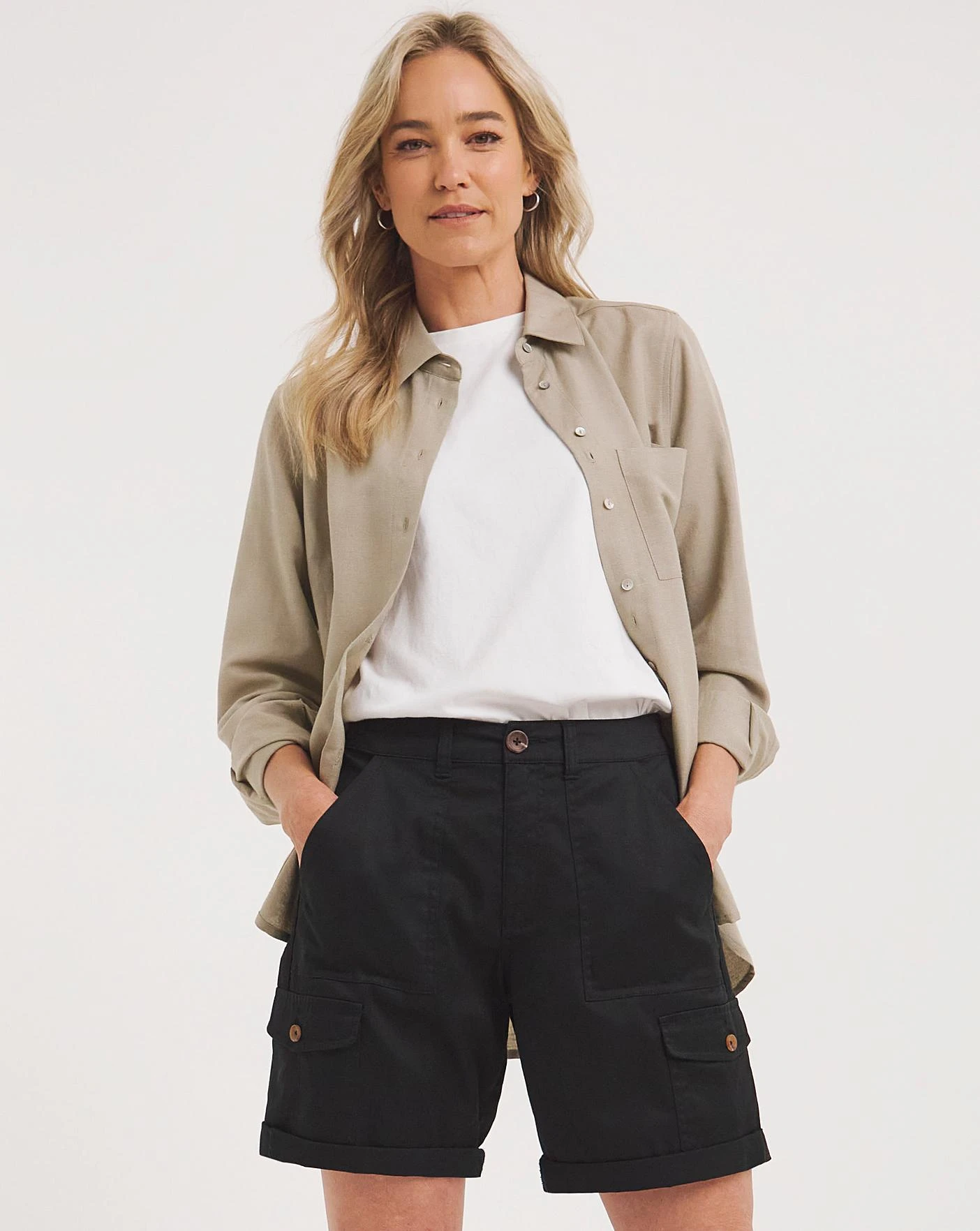 A cargo short is a really easy to wear style and we love this stretch cargo in our super soft cotton blend fabric. Flattering and comfortable, who said you need to sacrifice comfort for fashion? Pair with a plain tee and trainers for an effortless summer outfit.