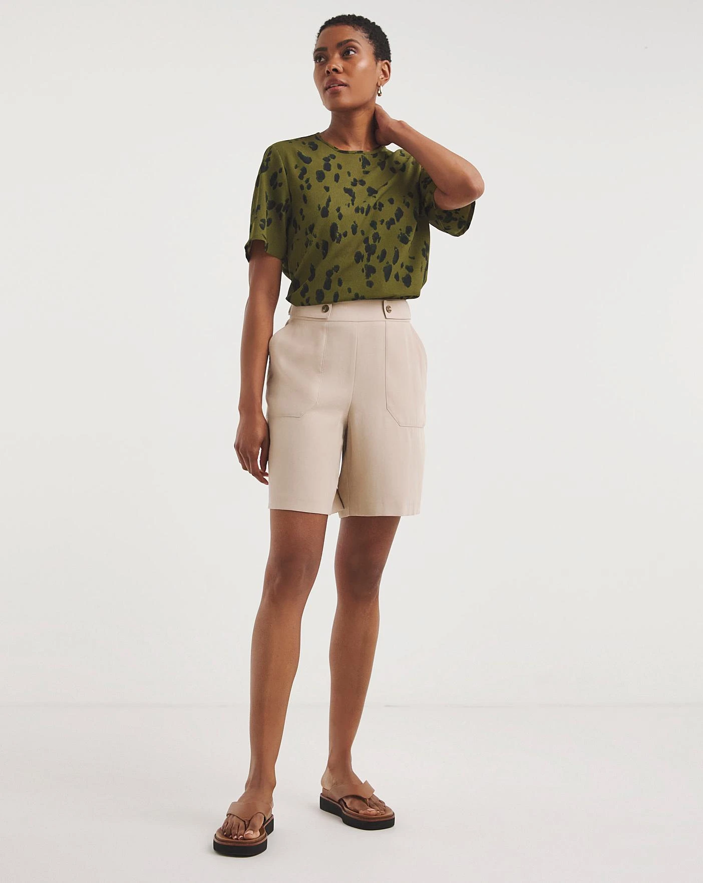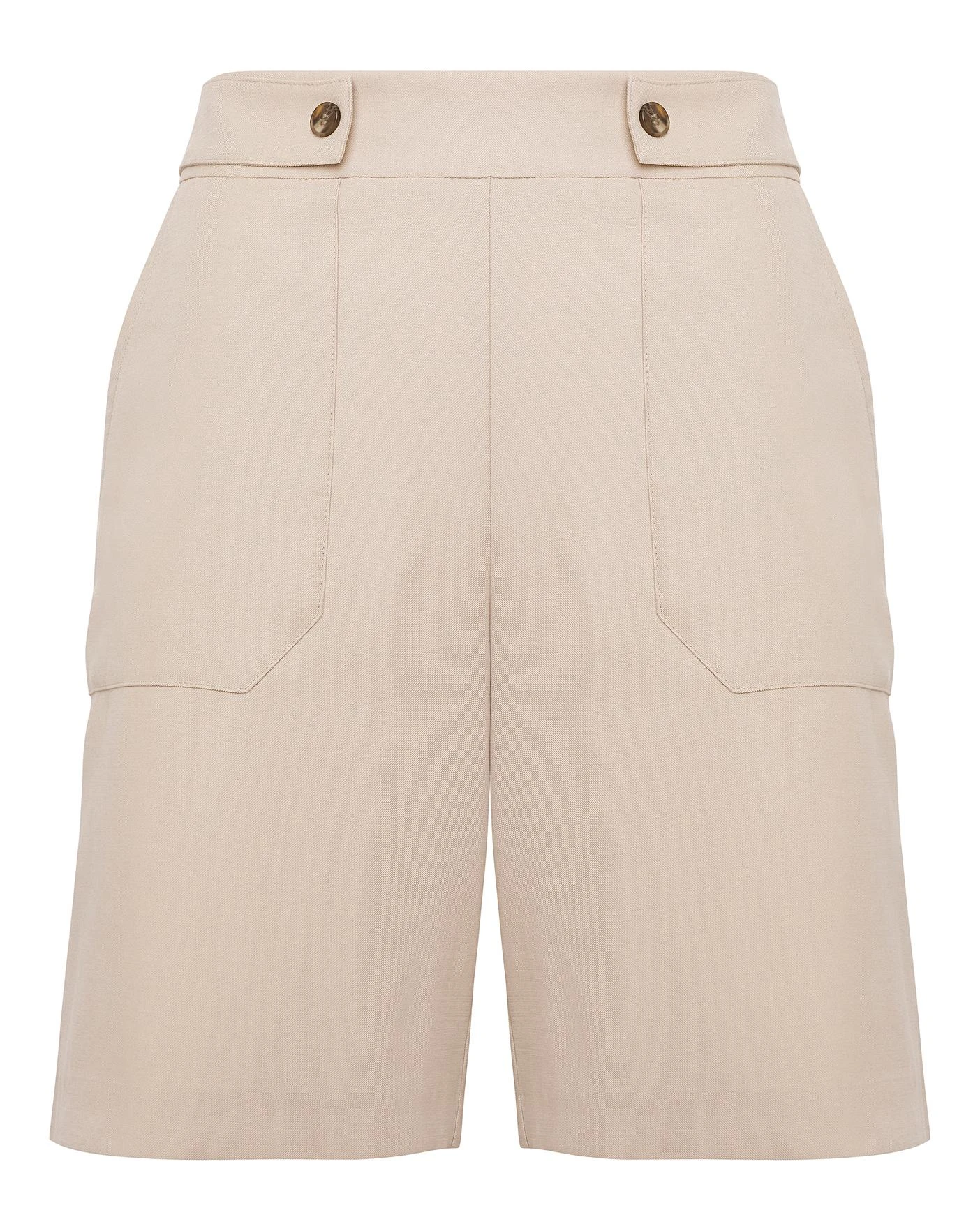 In a gorgeous Spring/Summer fabrication these striking Bemuda shorts are a perfect statement. The high quality fabric gives them a light and soft feel, ideal for the warmer months. Featuring a back elastic waistband, button front features for a crisp and clean look and large patch pockets pockets. These are an easy-to-wear pull-on style short allowing maximum comfort. Complete the look with our matching Overshirt Blazer for a stylish look.