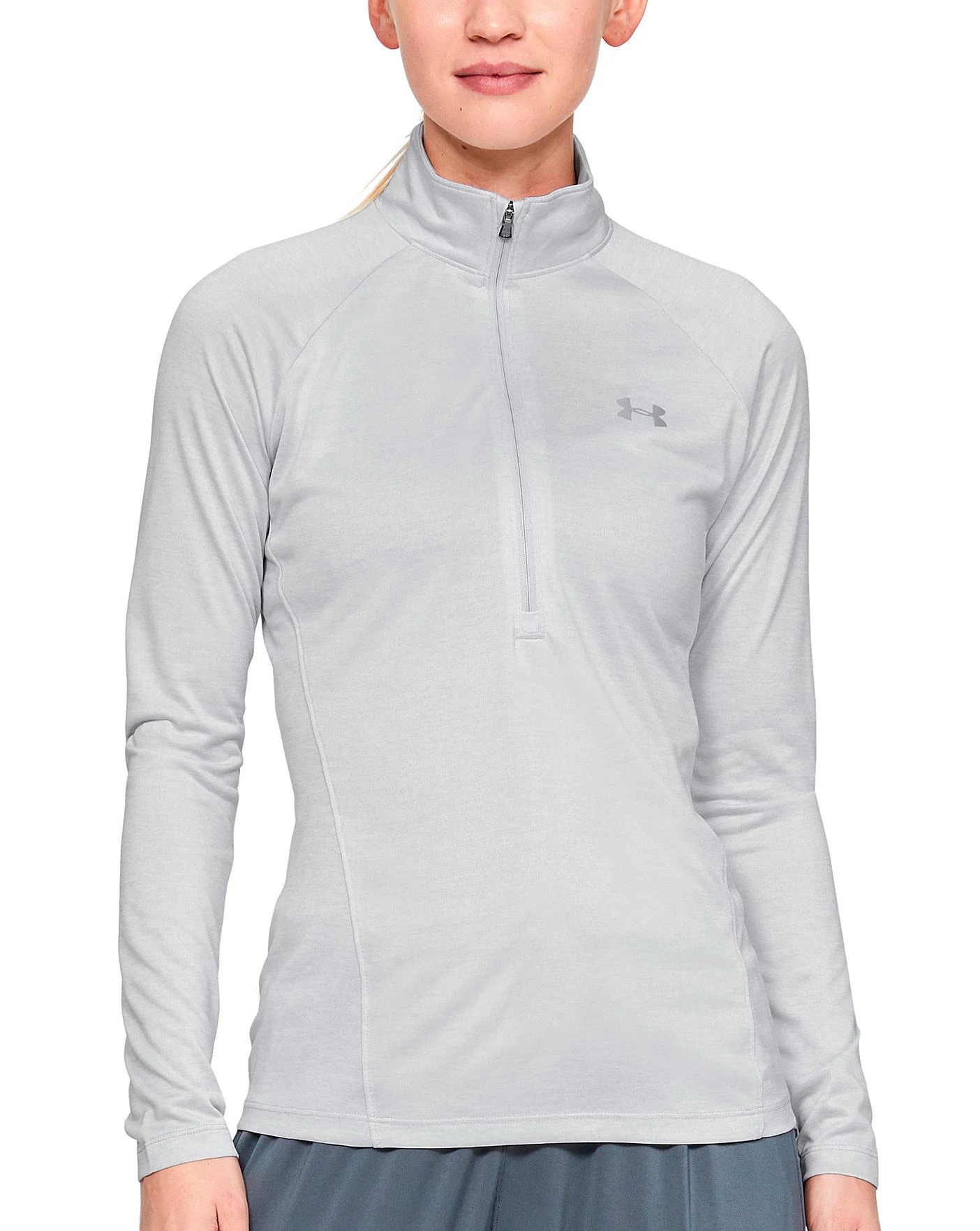 Giving a natural feel to your workout rotation. The Under Armour Tech ½ Zip Top in grey is crafted from silky soft fabric to a loose, comfortable silhouette to keep your mind on the workout in hand. UA Tech fabric dries quickly and keeps you cool, dry and comfortable through your workout, Generous half zip fastening ensures an easy on and off and instant cooling when you need it too and Raglan sleeves let you unlock a full range of motion.