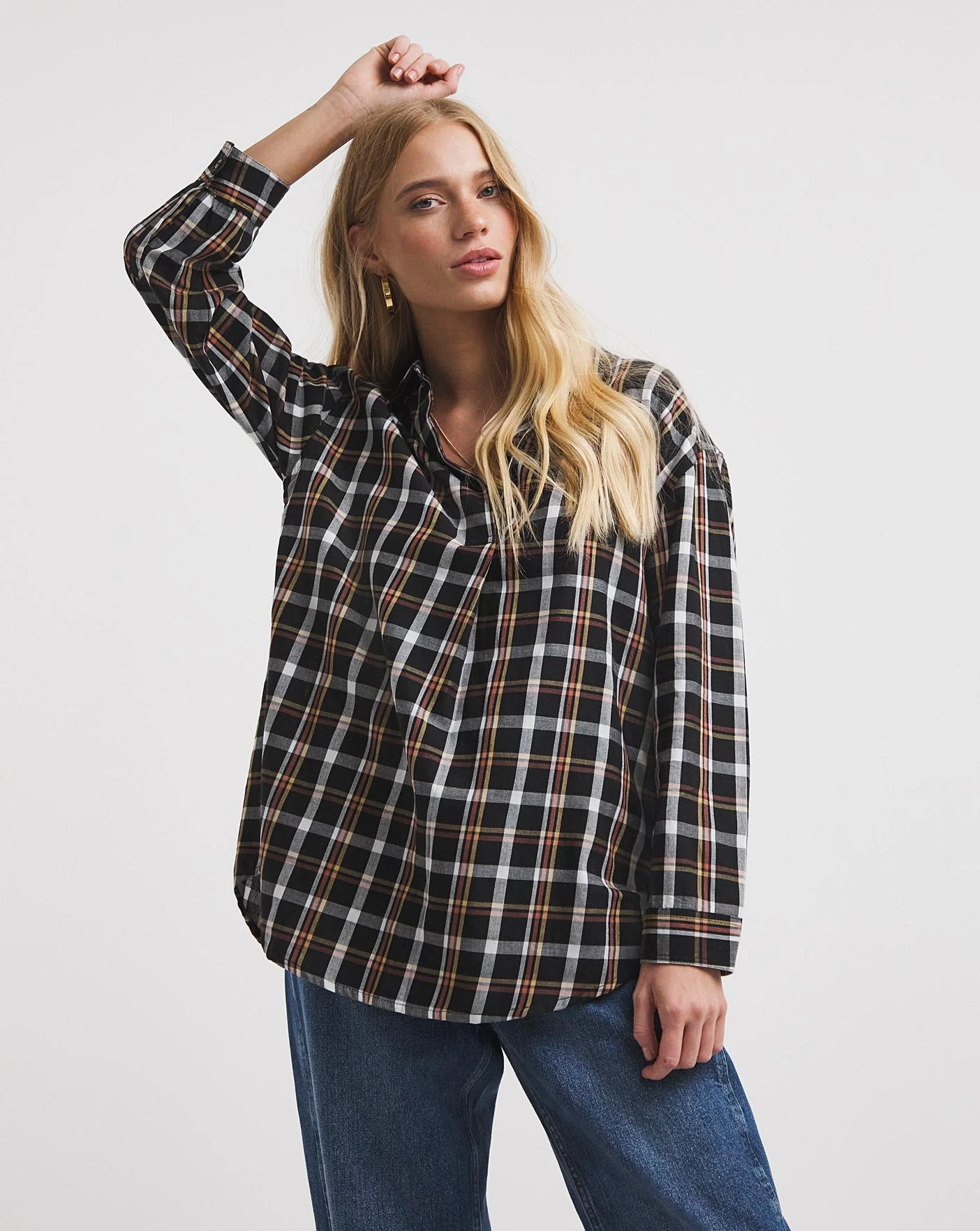 A check shirt is a staple that everyone needs in their wardrobe. With an open V-neck, collar and full length sleeves with button cuff, this shirt can be easily worn with jeans for a casual day-to-day look. In a relaxed fit this overhead shirt is made from 50% viscose, 50% cotton, non-stretch fabric.